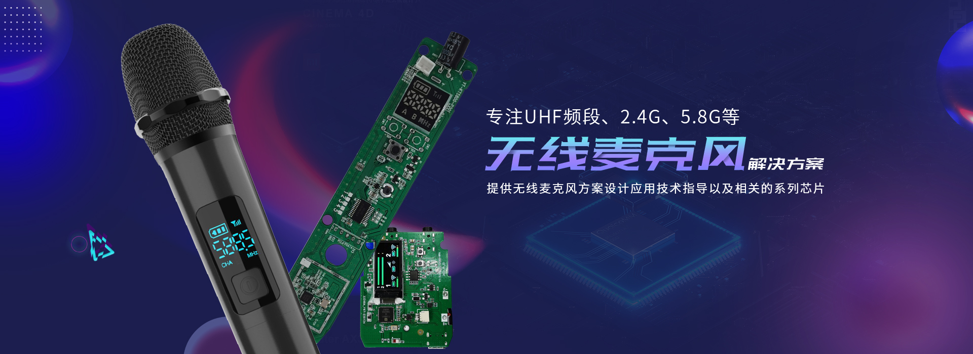 專注于無線麥克風應用芯片及方案服務商,為客戶提供UHF頻段、2.4G以及5.8G等無麥克風解決方案及相關的芯片,芯片適用于影視錄音麥克風、新聞采訪錄音麥克風、現場錄播麥克風、無線導覽傳聲系統、無線返送監聽系統等電聲領域。